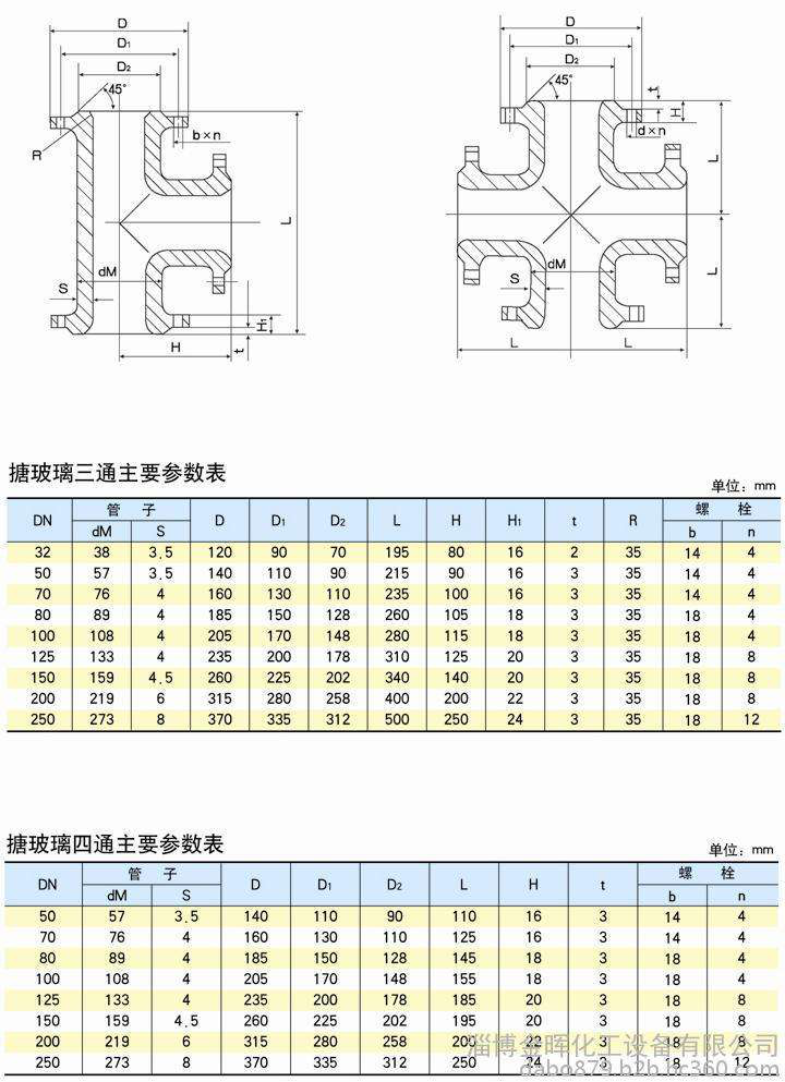 搪玻璃四通参数表